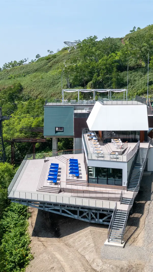 本プロジェクトは改築前のテラスの老朽化に伴う、テラスの改築とカフェ増築、既存ゴンドラ駅舎改修が主な内容です。